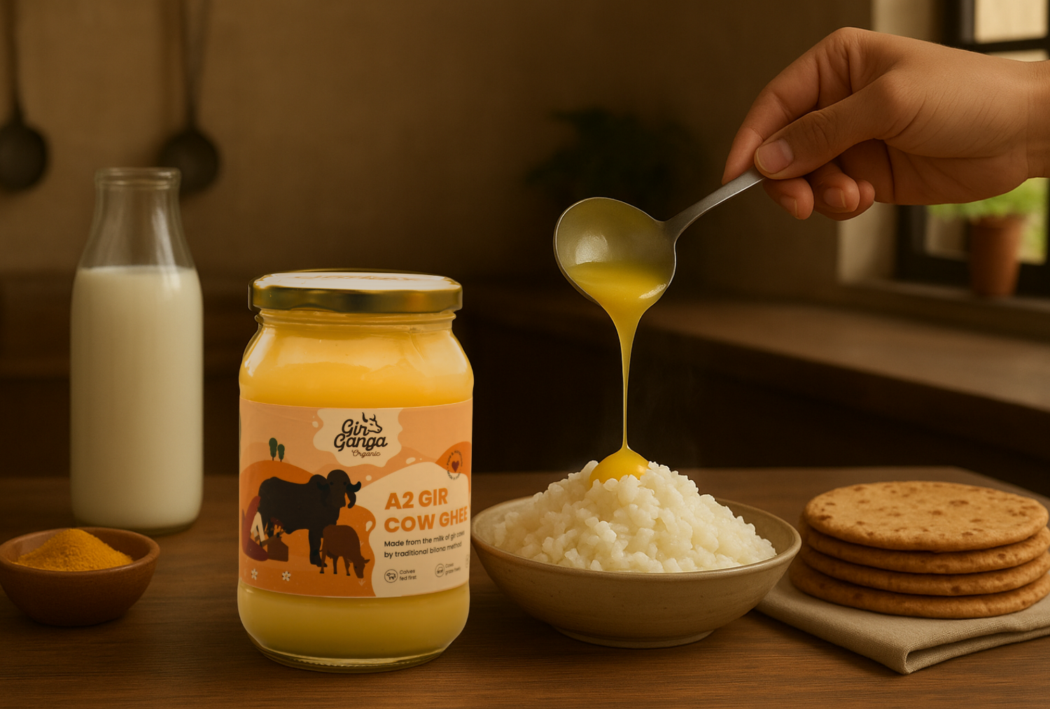 Known for its ability to stimulate digestive fire (Agni), ghee helps in the assimilation and absorption of nutrients from other foods. Its short-chain fatty acids are easily metabolized by the body, promoting a healthy gut and reducing inflammation.